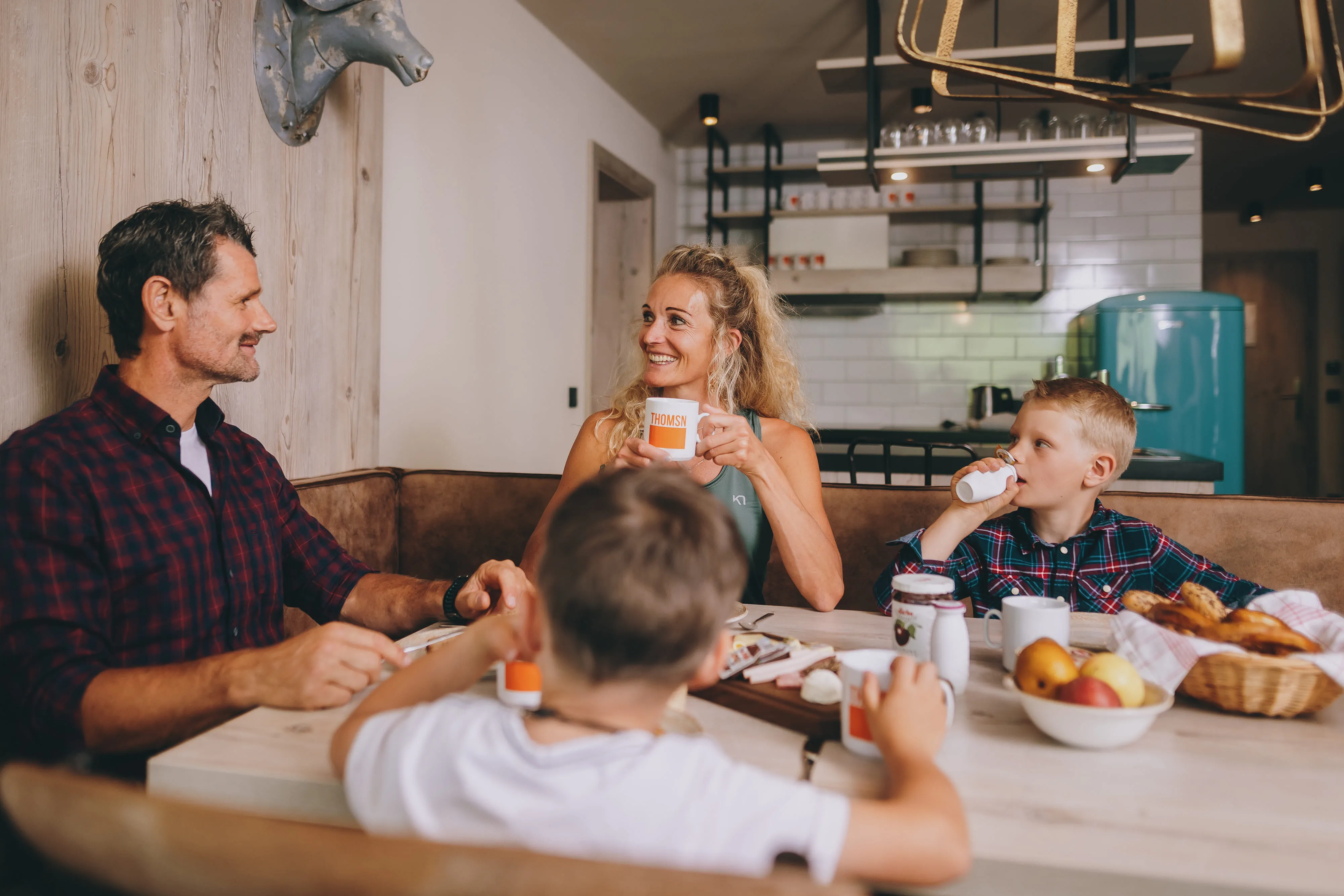 Das Restaurant im THOMSN trifft den Geschmack der ganzen Familie. Auf der Karte stehen lockere Klassiker wie Pizza, Burger und Pommes – Gerichte, die bei Kindern immer gehen. Dazu gibt’s Cheesecake, Eis und vieles mehr für die süße Pause zwischendurch. Besonders lässig: Auf der großen Sonnenterrasse genießt man das Essen ganz entspannt mit Blick auf die Berge, während die Kinder einfach sie selbst sein dürfen. Frühstück lässt sich flexibel dazubuchen – und im Sommer ist es sogar im THOMSN-Special inklusive.