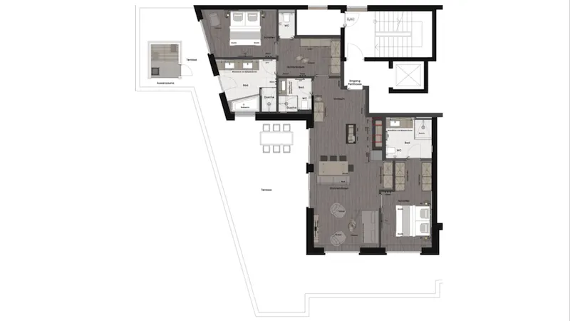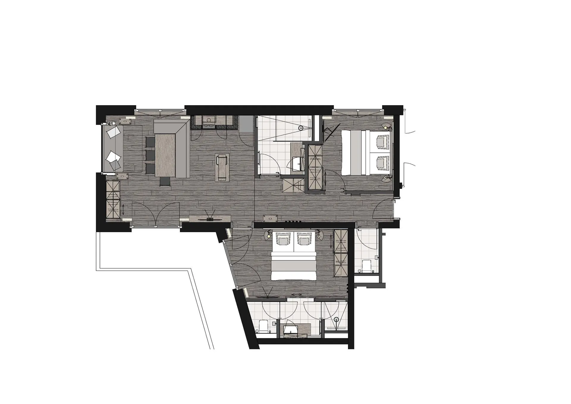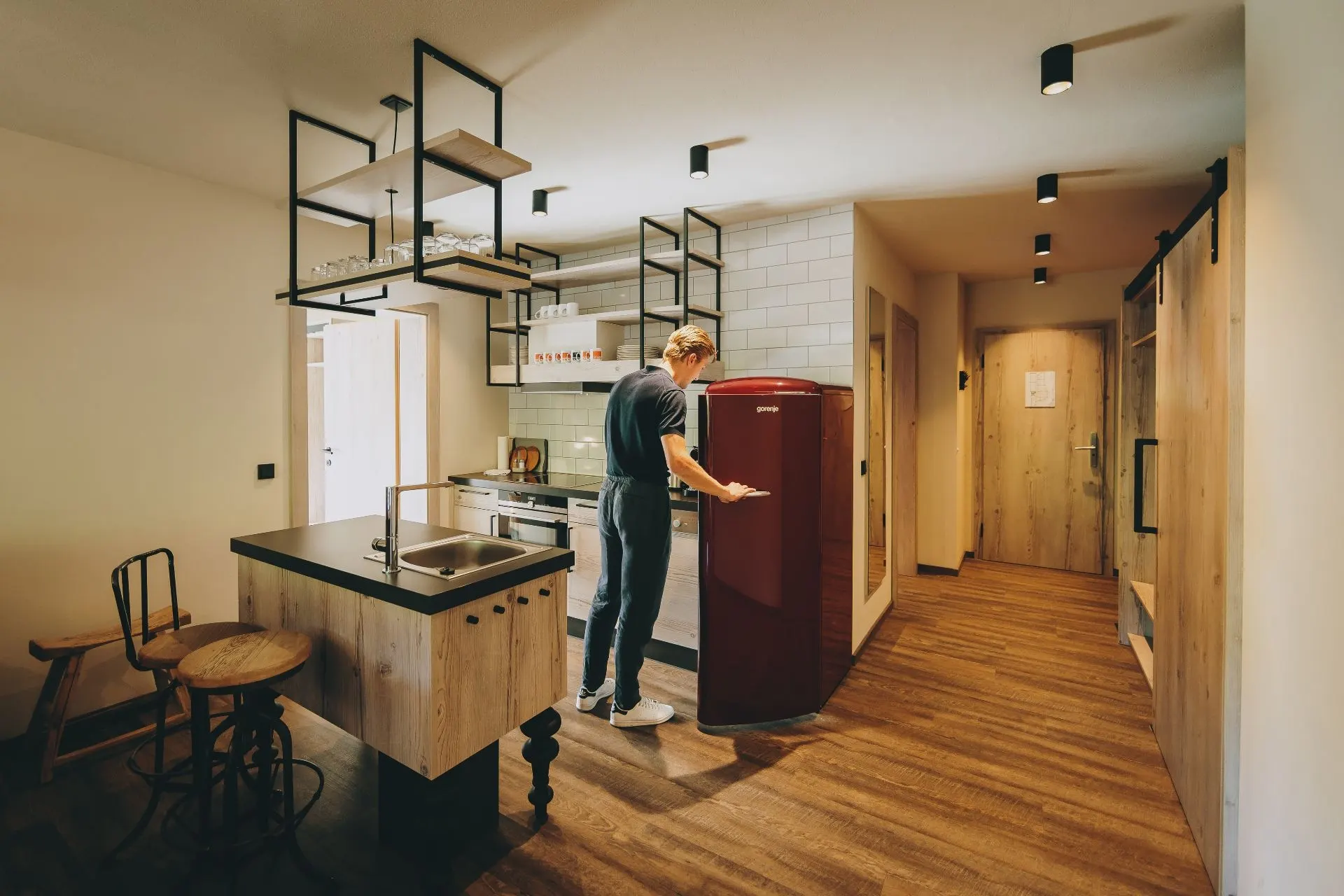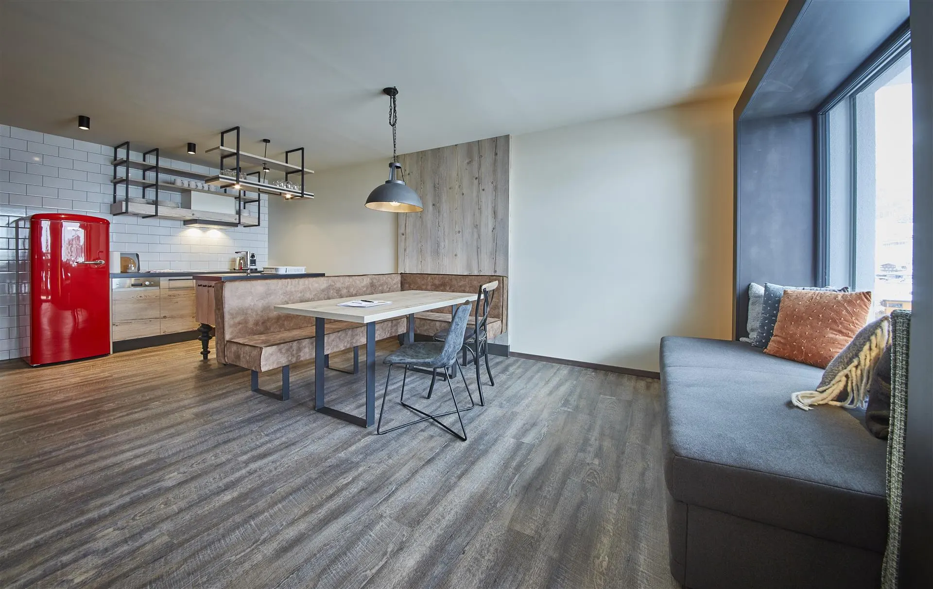 Das “Standard Appartement” ist ausgestattet mit einem Schlafzimmer. Dies verfügt über ein Doppelbett und ein Schlafsofa für eine Person. Es bietet ein Badezimmer mit Dusche und separatem WC. Alle Badezimmer sind ausgestattet mit Föhn, Handseife, Haar- und Körpershampoo, Handtücher und kuscheligen Bademänteln. Hochwertige Boxspringbetten und Matratzen von Joka mit Taschenfederkern garantieren ein erholsames Schlafvergnügen.