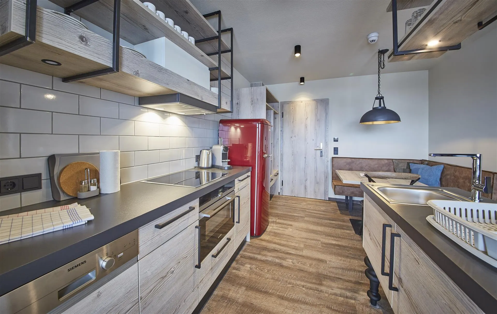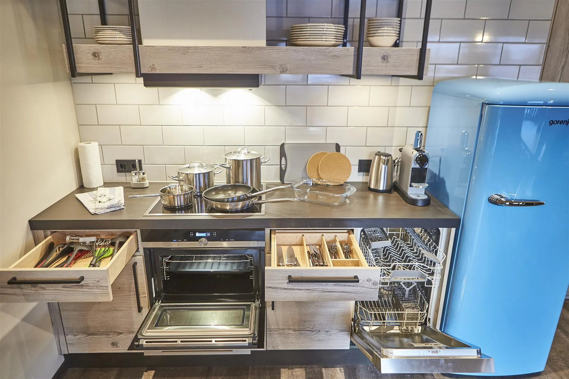 Die voll ausgestattete Küche mit Küchenpaket (Spülmittel, Spül-Tabs, Küchenrolle, Geschirrtücher, Salz & Pfeffer) und Nespresso Kaffeemaschine (ohne Kapseln) lädt zum gemeinsamen Kochen ein.