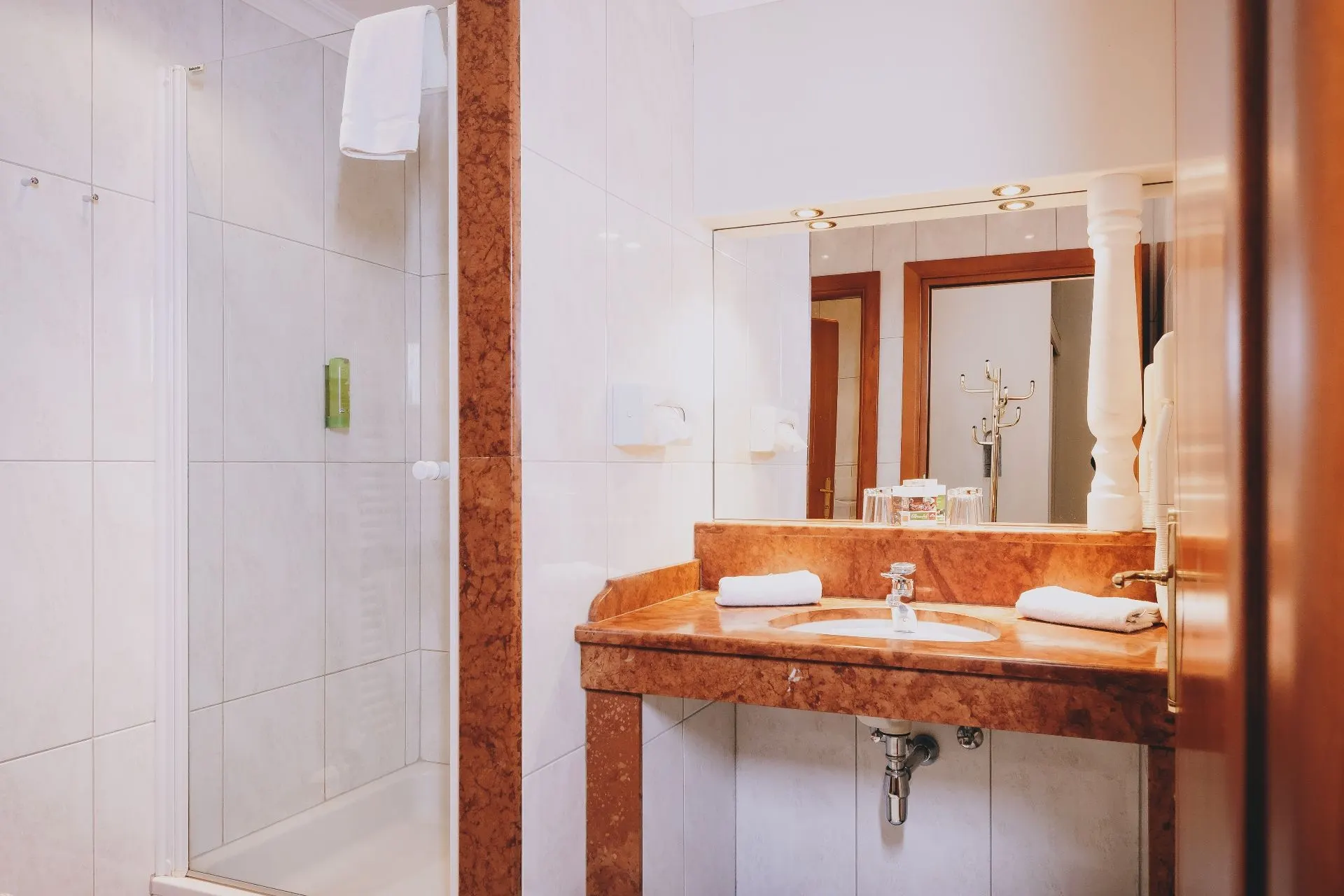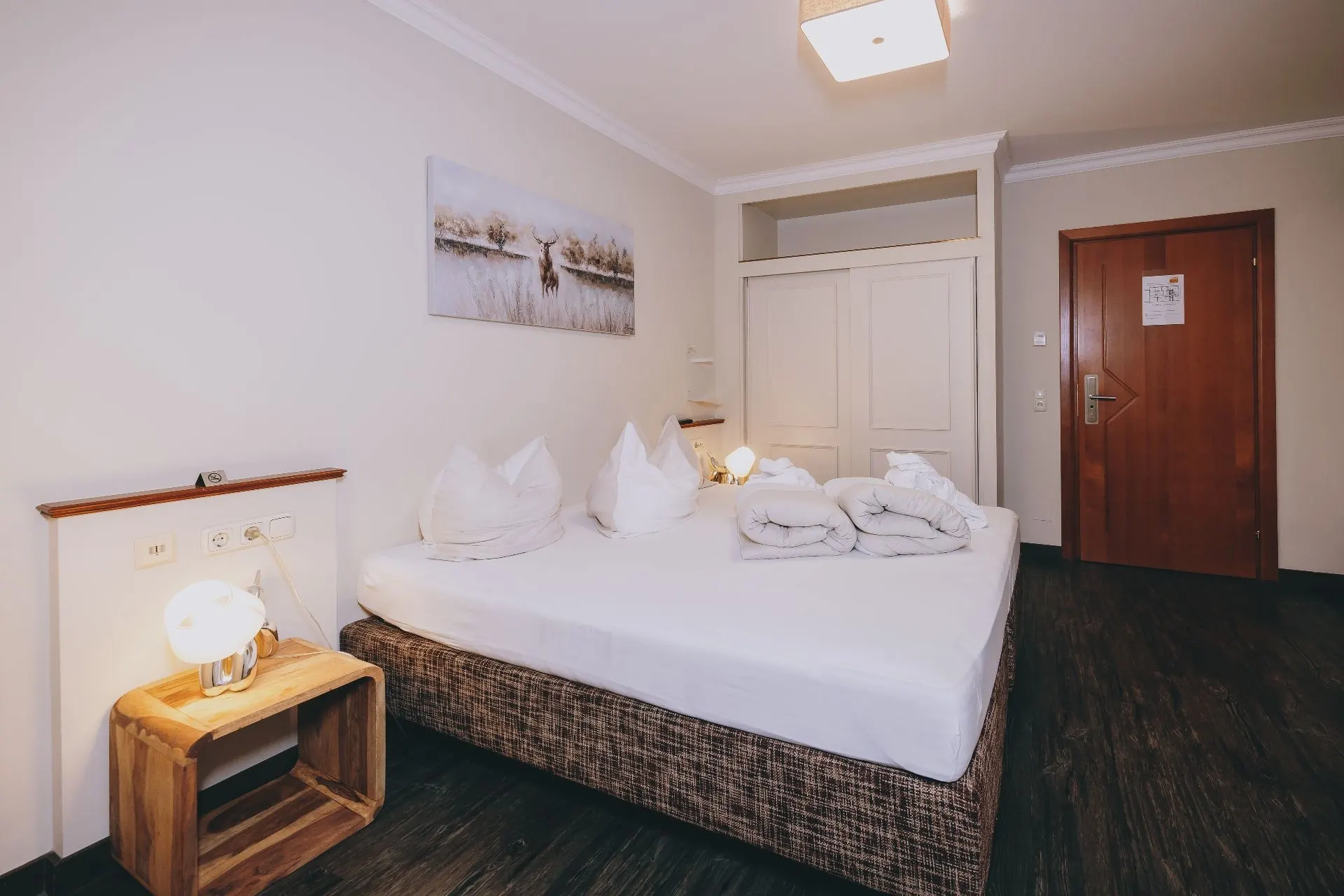 Zum Standard des „Doppelzimmer Comfort“ gehören, kostenfreies WLAN, Flatscreen-TV, Radio, Safe. Ebenfalls inkludiert sind das Frühstücksbuffet und der tägliche Reinigungsservice des gesamten Zimmers.