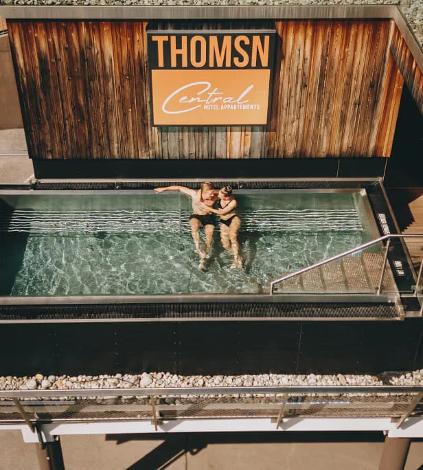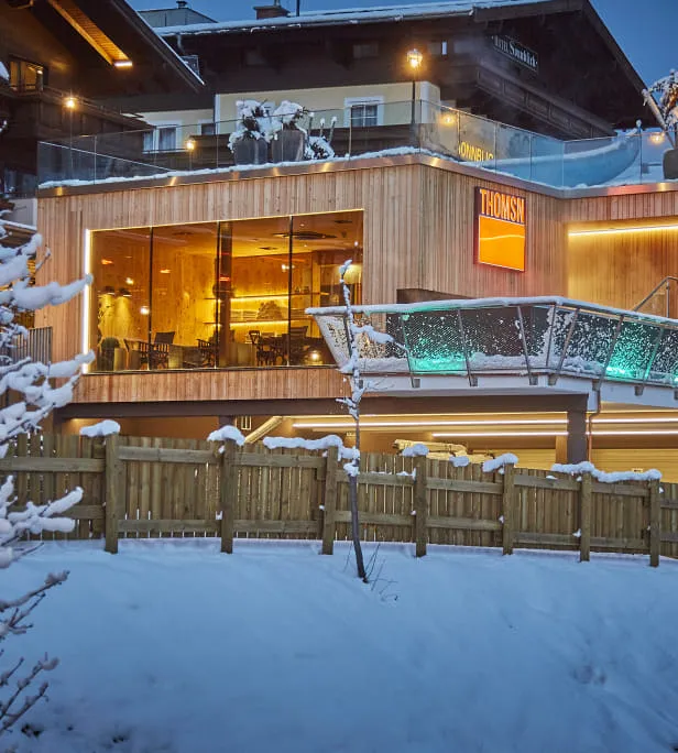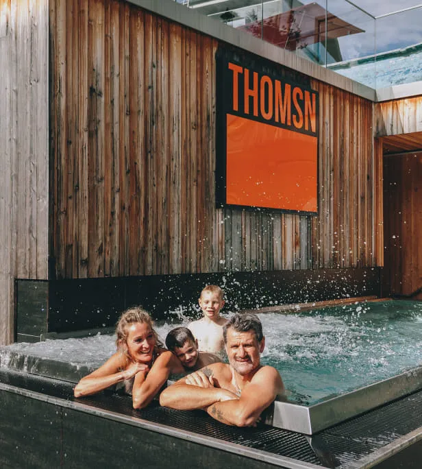 Der ganzjährig beheizte Infinity Pool im THOMSN ist der ideale Ort für entspannte Nachmittage und kleine Auszeiten zwischendurch. Warmes Wasser, klare Bergluft und der Blick über die Dächer von Hinterglemm bis zu den Berggipfeln des Glemmtals, der Grundstein für wohlige Wellness in Saalbach Hinterglemm.